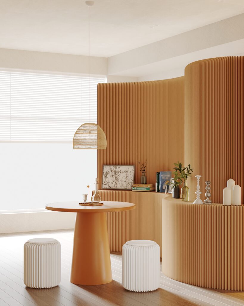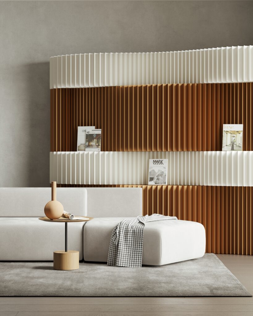 Sculptural pleated texture with architectural presence