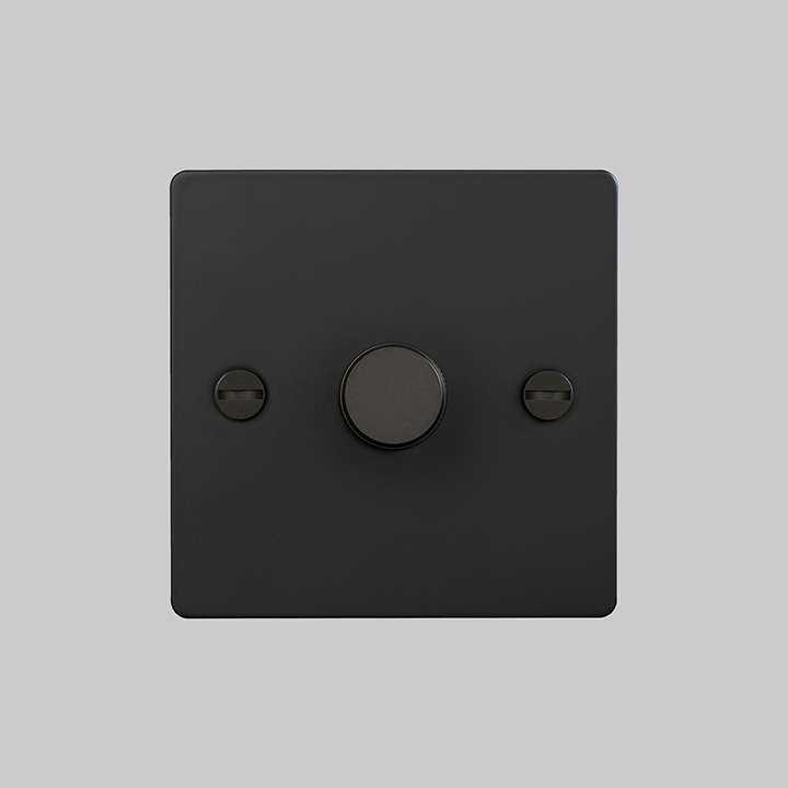 A 1G dimmer switch in solid metal finished in durable, UV stabilised, PU paint. It comes with a choice of solid metal detail kits including a dimmer knob and coin screws