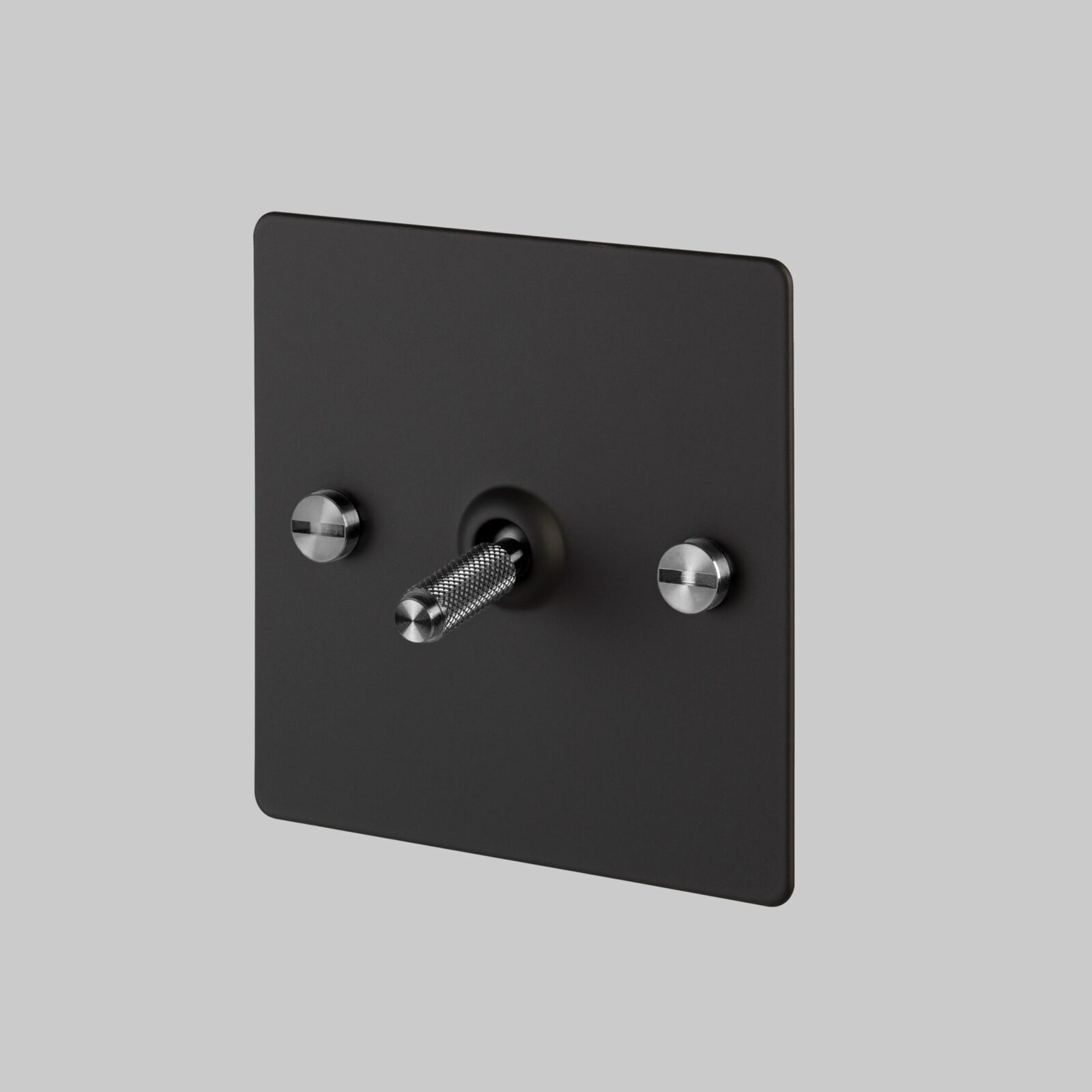 The intermediate toggle switch features a flat plate, fixed with our signature solid metal coin screws
