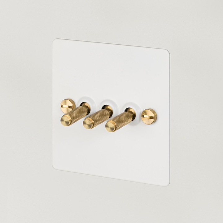 A 2G dimmer switch in solid metal finished in durable, UV stabilised, PU paint. It comes with a choice of solid metal detail kits including a dimmer knob and coin screws, available in steel, brass or black.