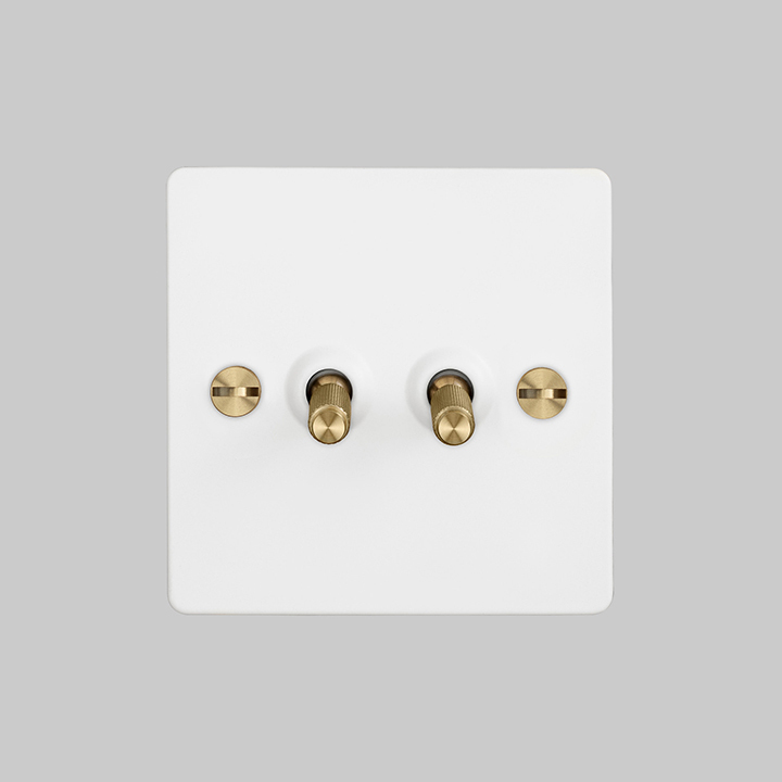 A 2G toggle switch in solid metal finished in durable, UV stabilised, PU paint. It comes with a choice of solid metal detail kits including a toggle arm and coin screws, available in steel, brass or white.