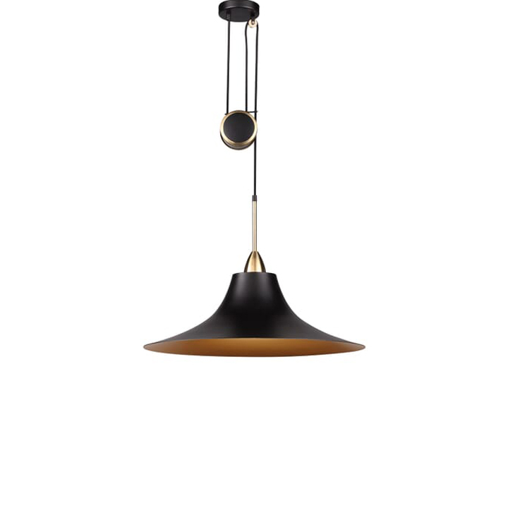 Steel shade, braided cord, solid brass & steel wheel, lampshade