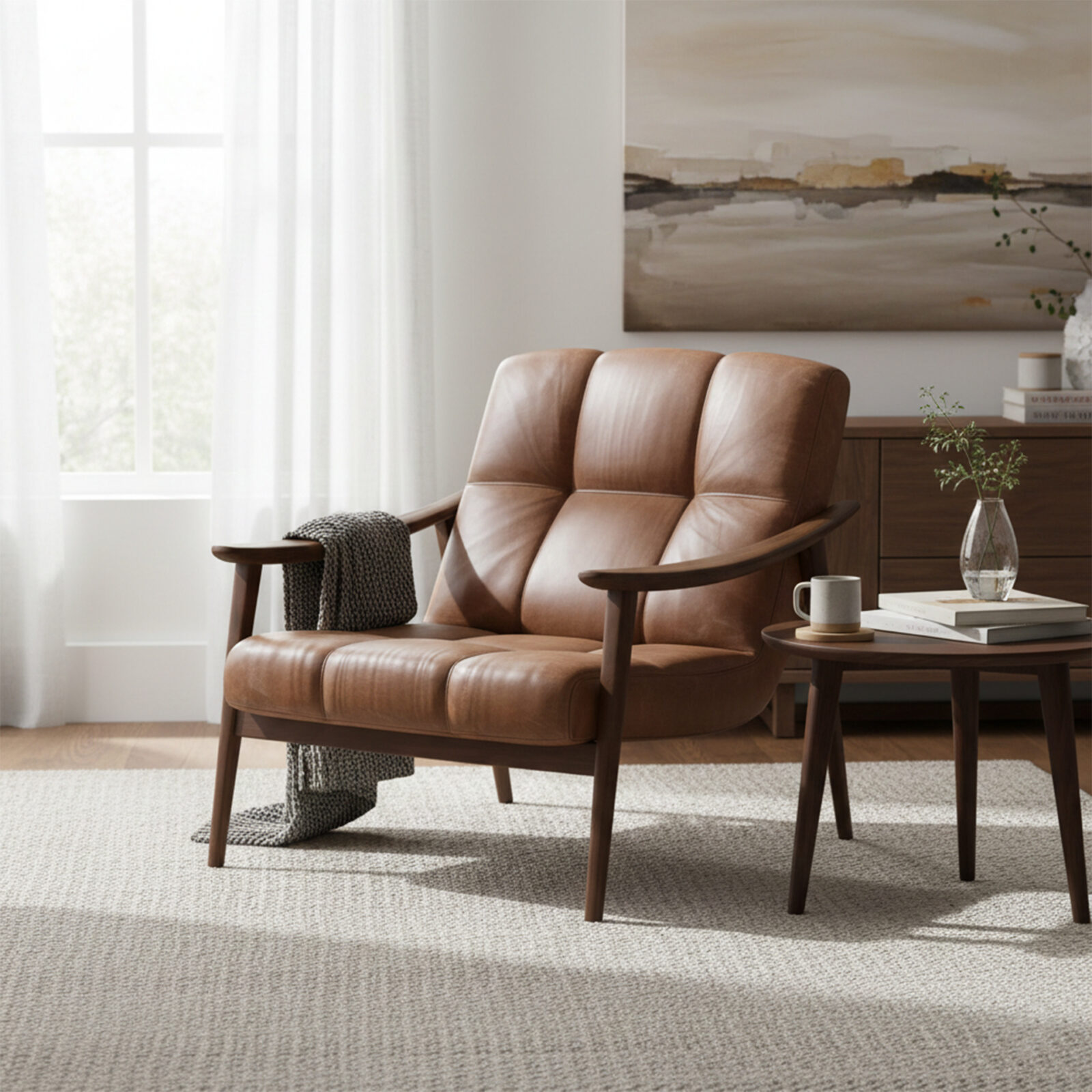 • Interior bergaya mid-century, contemporary, atau modern classic yang menonjolkan keindahan material alami.