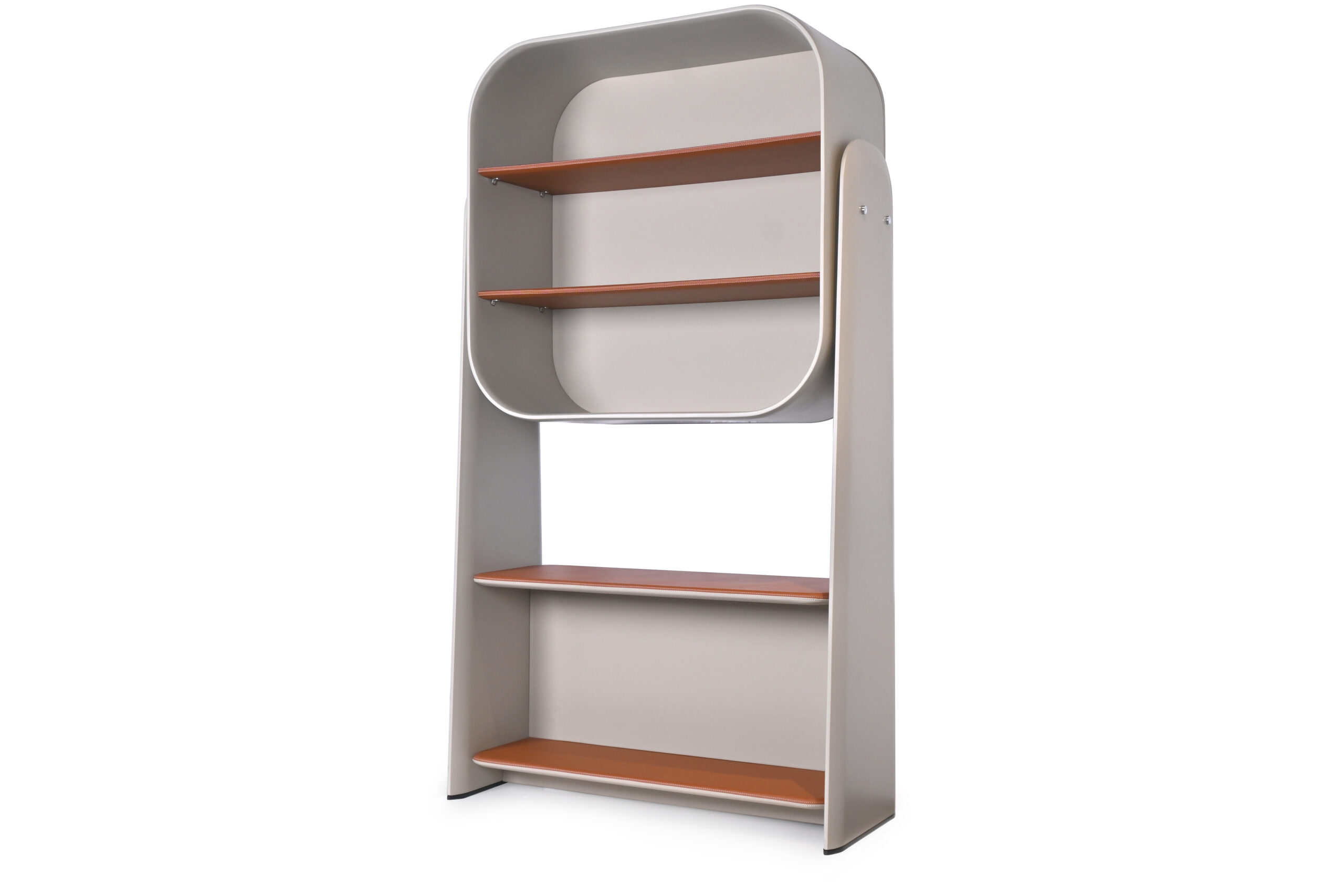 The Aura Display Cabinet features rounded frames and open shelving that feel light yet structured. Designed to display objects, books, or curated pieces, it brings warmth and visual rhythm to offices, lounges, or executive spaces while maintaining a clean, modern presence.