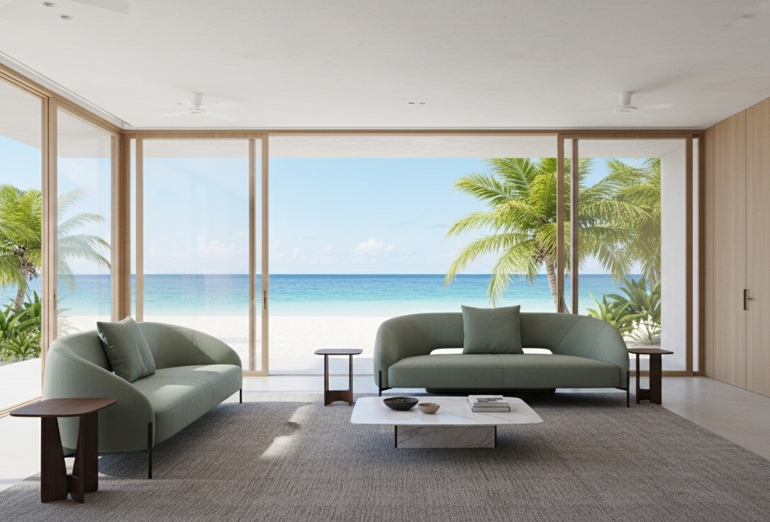AUREL is a sofa defined by soft geometry, floating lightness, and quiet refinement.