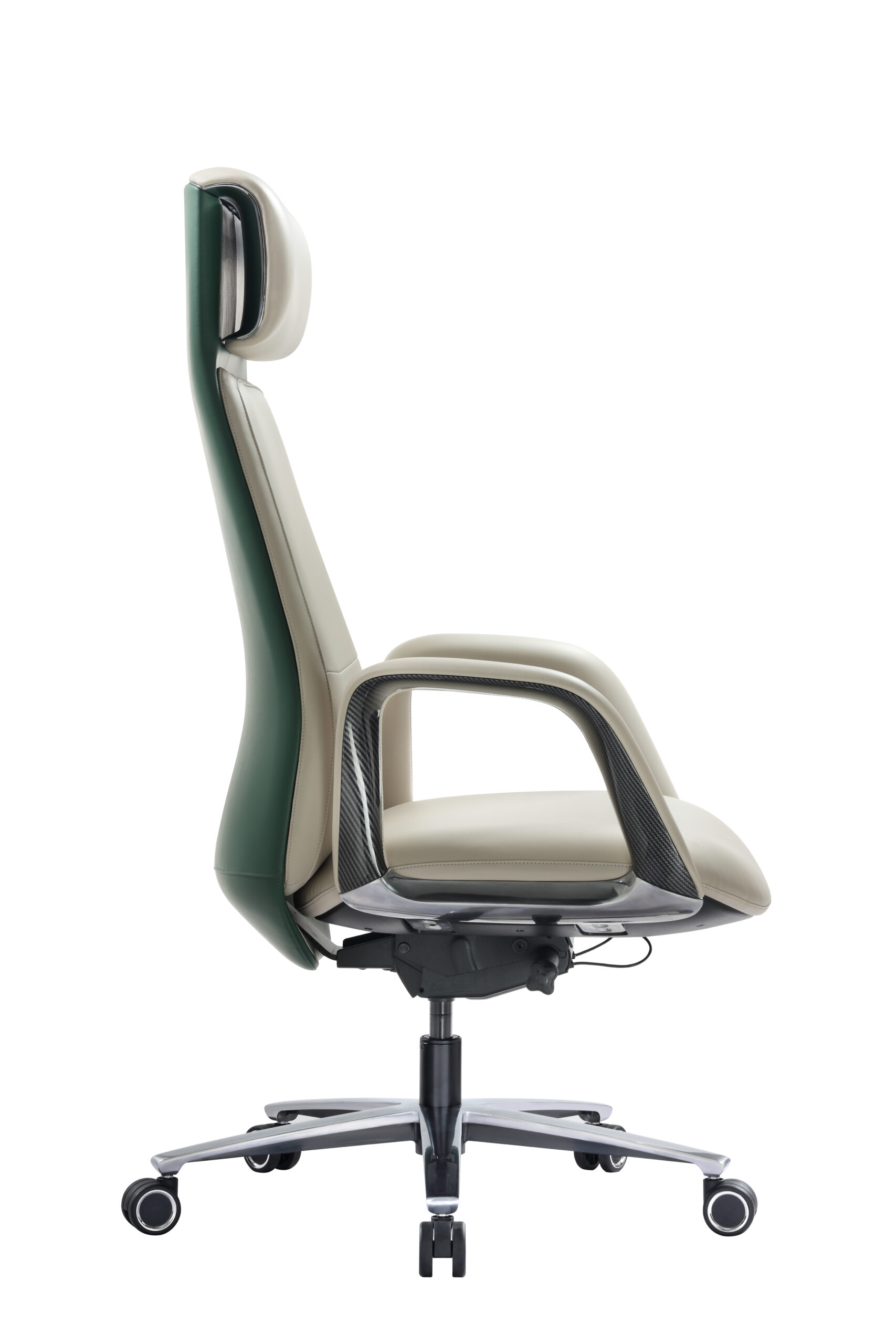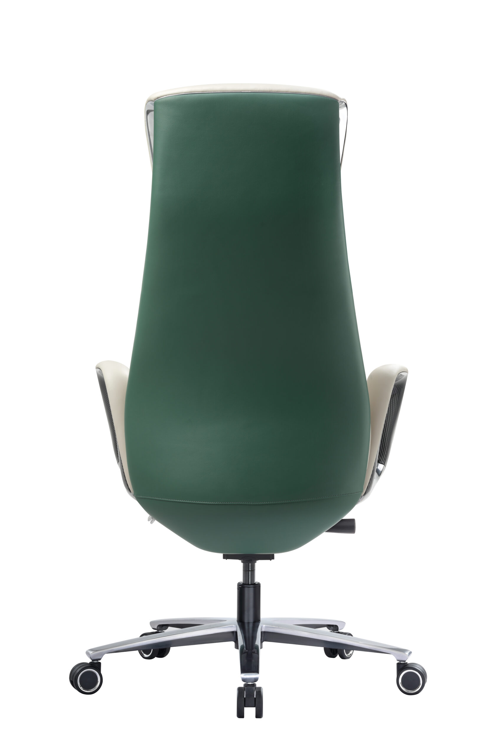 Its tall, sculpted high-back design provides full support from the lower back to the headrest, promoting correct posture during long hours of decision-making. Generous padding and premium leather upholstery ensure exceptional comfort, while the refined stitching and contrasting inner surfaces highlight the chair’s architectural character.