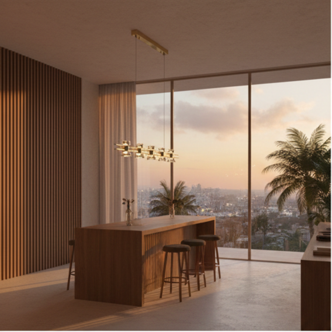 Parvus Line Gold Pendant Lamp menghadirkan pencahayaan gantung yang terarah dan merata dengan desain linear yang bersih serta sentuhan gold yang elegan. Cocok untuk meja makan, kitchen island, atau area kerja, lampu ini memperkuat karakter ruang sekaligus menjaga kenyamanan visual tanpa tampil berlebihan.