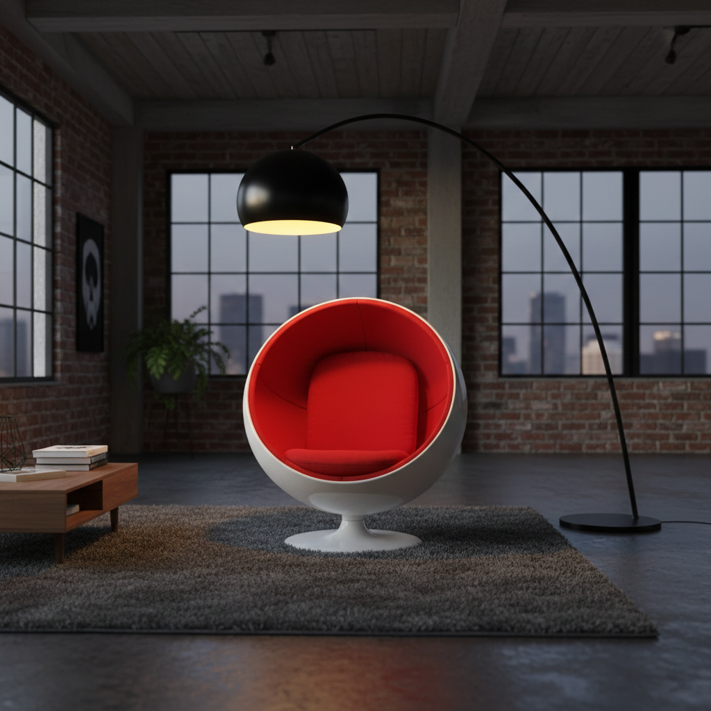 - Tema Interior yang Cocok: Minimalis kontemporer, retro-futuristik, industrial modern, atau ruang dengan aksen warna hangat yang kontras.