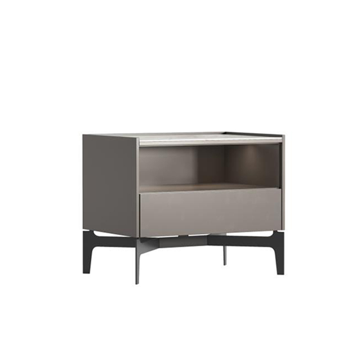 Cadenti Bedside Table Grey Metal dirancang dengan filosofi ketegasan modern yang bersih, memadukan kekuatan struktural dan keindahan minimalis dalam satu kesatuan harmonis. Seluruh bagian meja ini menggunakan material logam pilihan yang memberikan kesan solid sekaligus ramping.