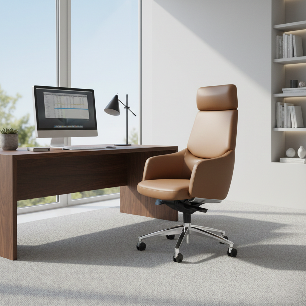 Corpus Highback Brown Polyurethane dirancang fleksibel untuk menyatu dengan berbagai gaya ruang, baik profesional maupun personal.