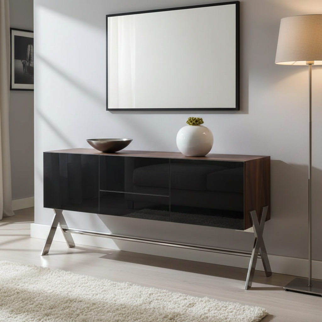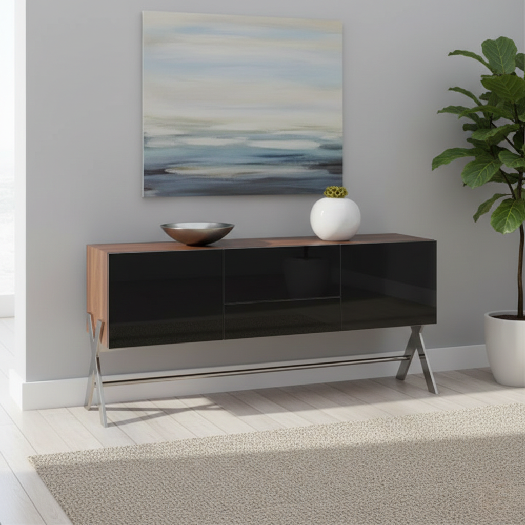 Dalam sebuah ruang, furnitur bukan sekadar pengisi tempat. Ia adalah penentu suasana, pembawa karakter, dan cerminan selera pemiliknya. Danke Cupboards Walnut Wood hadir sebagai pernyataan visual yang tenang namun berwibawa, menghadirkan keindahan yang tidak berteriak tetapi terasa kuat sejak pandangan pertama. Dengan siluet yang bersih, proporsi yang seimbang, serta perpaduan warna kayu walnut yang hangat dengan sentuhan kaca hitam elegan, lemari ini memancarkan aura kemewahan modern yang matang. Ia diciptakan bukan hanya untuk disimpan, tetapi untuk dinikmati, dirasakan, dan dijadikan bagian dari cerita ruang hidup yang berkelas.