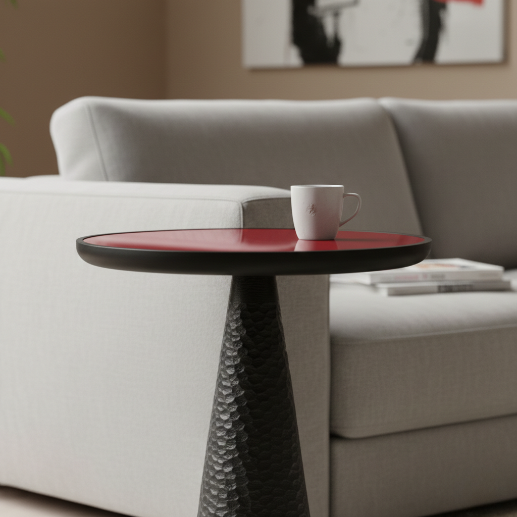 Banyak ruang hunian modern terasa dingin, kosong, atau kehilangan karakter karena furnitur yang sekadar fungsional tanpa jiwa. Meja kecil sering dipilih hanya sebagai pelengkap, tanpa mempertimbangkan dampak visual, tekstur, dan energi yang dibawanya ke dalam ruangan. Akibatnya, ruang terasa datar, kurang hidup, dan tidak meninggalkan kesan mendalam bagi penghuninya. Fumera Side Table Black Wood hadir sebagai solusi yang menyatukan fungsi dan makna. Dengan bentuk kerucut bertekstur hitam yang kuat serta permukaan kaca merah yang berkilau halus, meja ini mengubah sudut ruang biasa menjadi pengalaman visual dan emosional yang berlapis, menghadirkan keseimbangan antara kekokohan dan keanggunan.