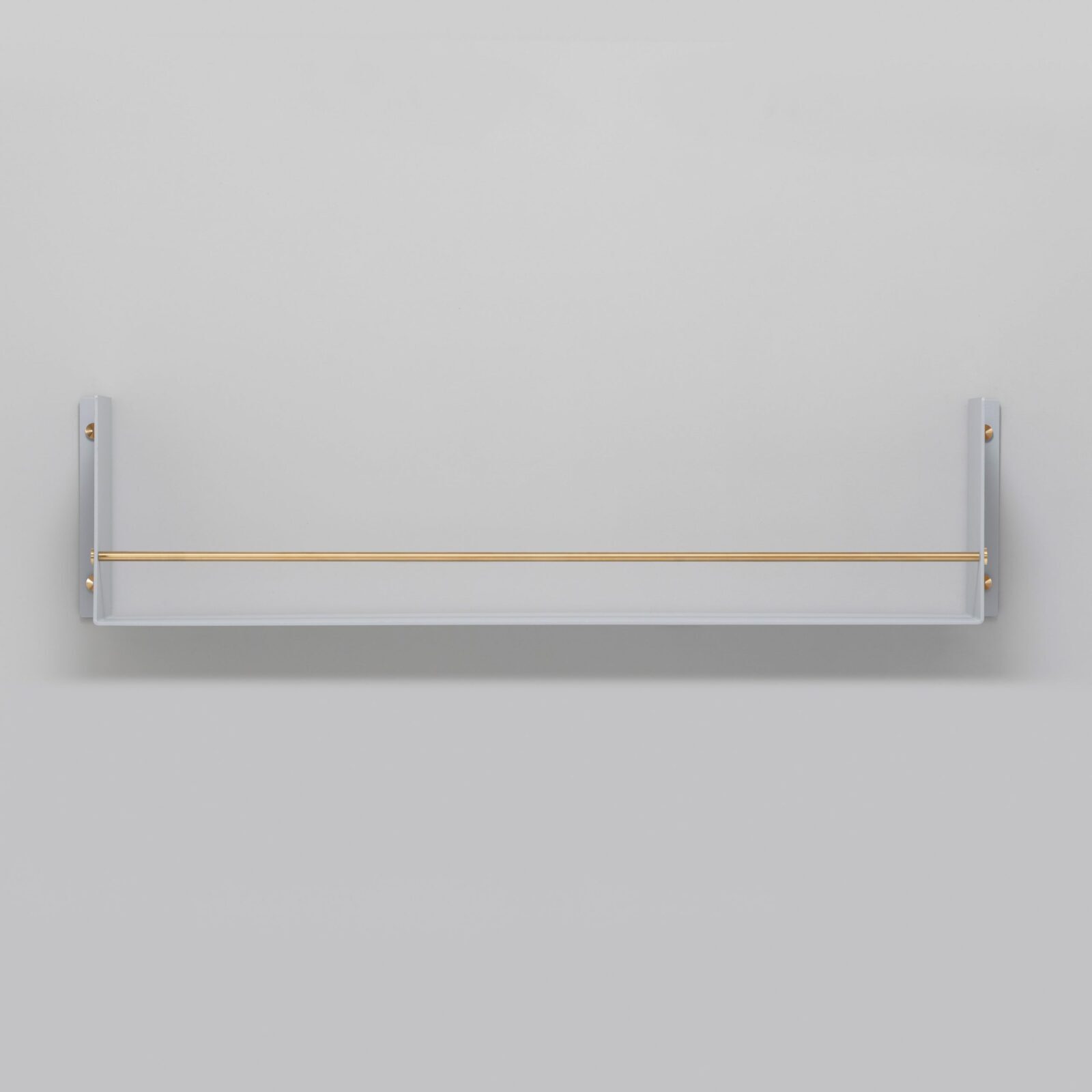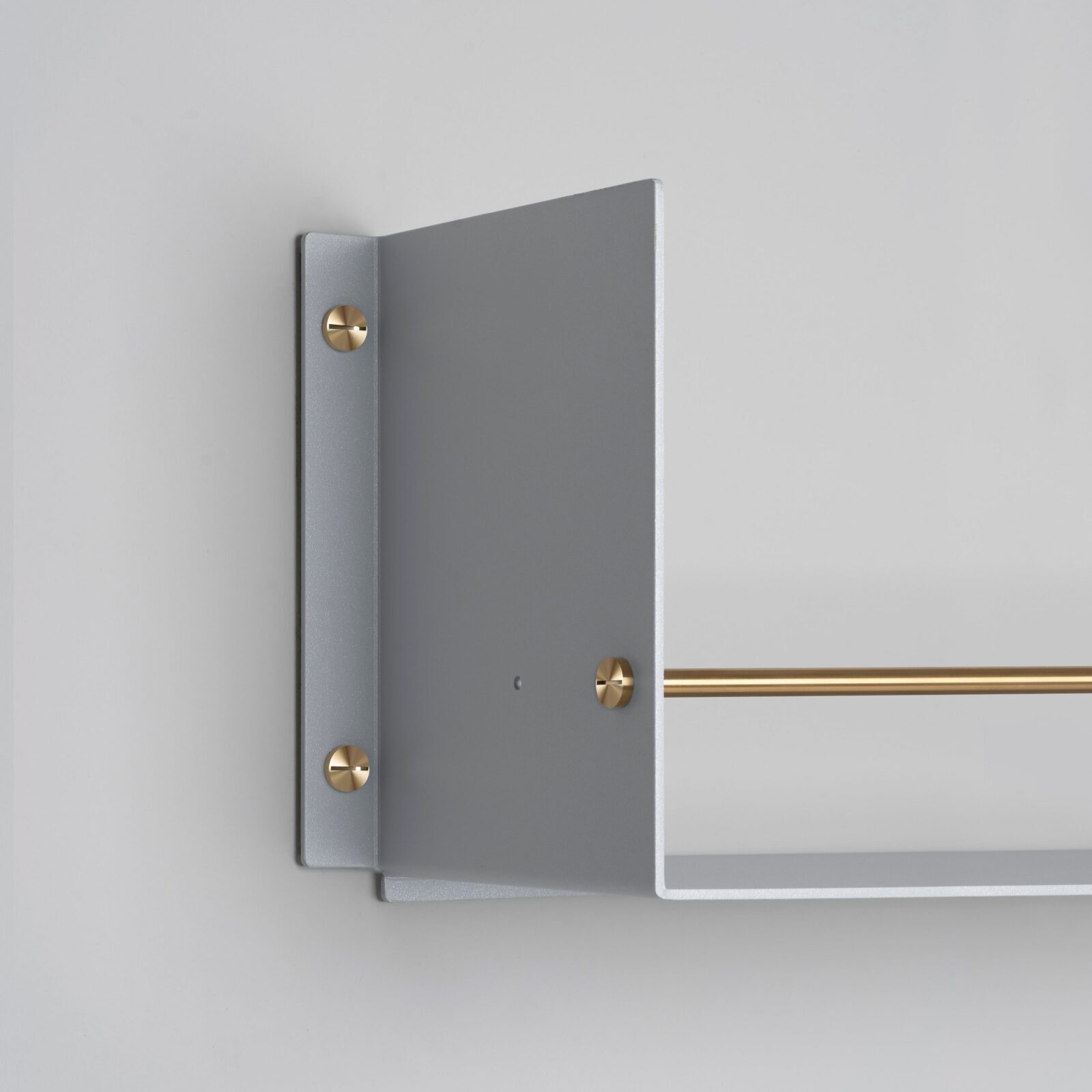 The heavy-duty shelf is made from laser cut 4mm sheet aluminium, press bent and powder coated. To keep your belongings where they should be, it features a 12mm hand polished solid metal guard rail, polished by hand and matching solid metal coin screws.