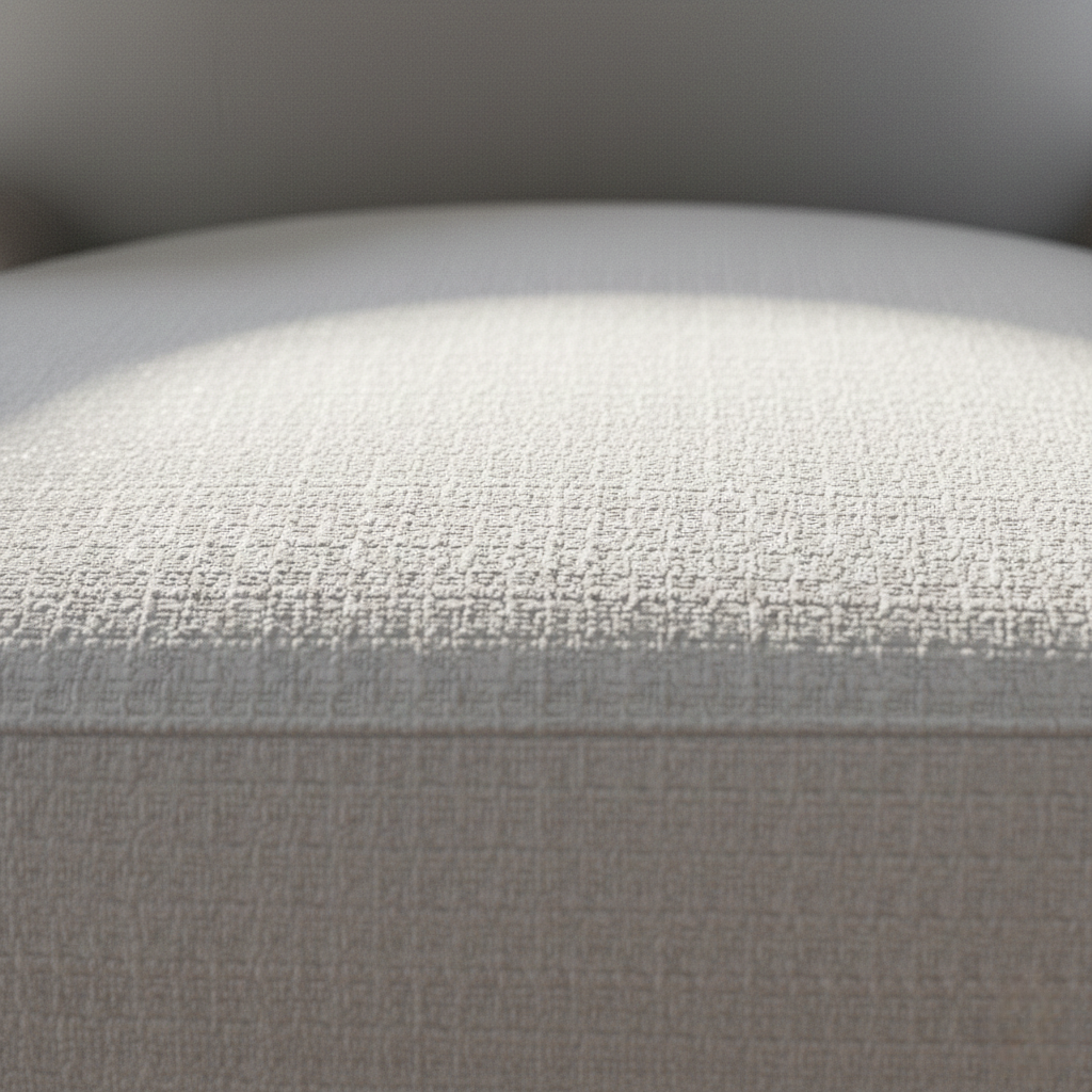 - Pelapis kain berkualitas tinggi berwarna abu-abu terang, lembut saat disentuh dan nyaman digunakan dalam waktu lama