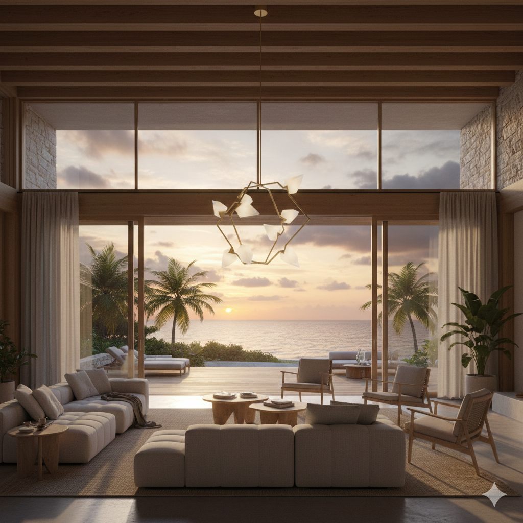 Lampu ini dapat berfungsi sebagai focal point ruang tanpa memerlukan elemen dekoratif tambahan yang berlebihan.