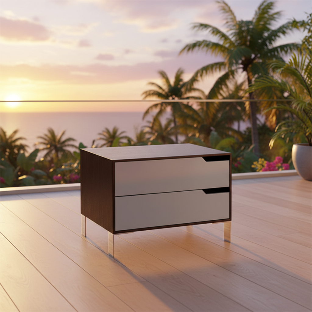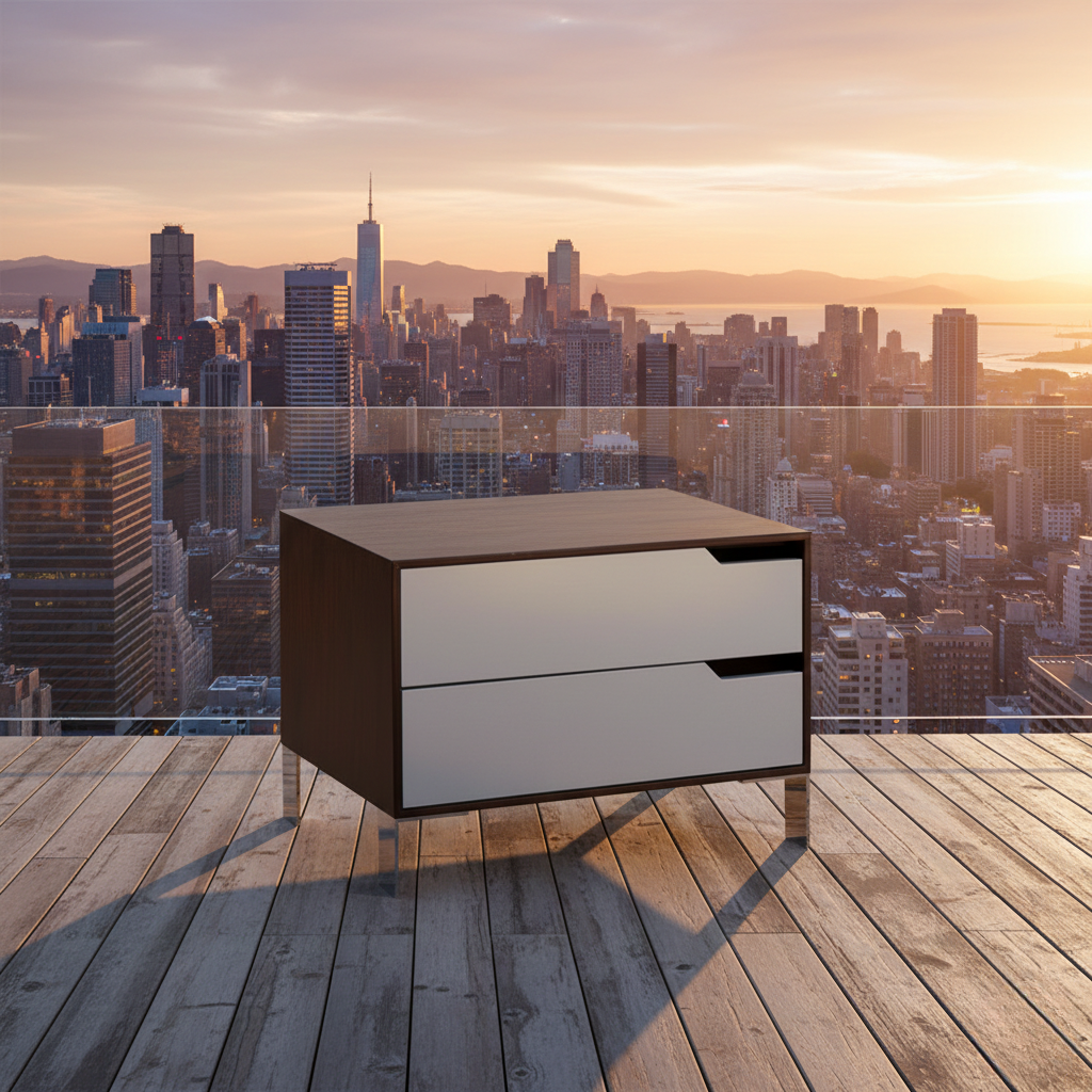 Kestrel Bed Side Table – Right menawarkan solusi lengkap atas permasalahan tersebut. Dengan veneer dark walnut yang memberi sentuhan hangat dan elegan, ditopang rangka metal yang kokoh serta aksen stainless steel yang memperkuat karakter modern, meja ini tidak hanya kuat dan tahan lama tetapi juga mampu mempercantik kamar tidur Anda. Desainnya yang proporsional dan fungsional memastikan bahwa setiap elemen kamar mendapat manfaat, menghadirkan keselarasan visual sekaligus kenyamanan penggunaan.