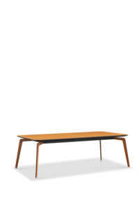 Supported by angled legs that echo the LINEA design language, the table maintains a strong architectural identity while remaining approachable. It is well suited for boardrooms, creative meeting spaces, and multifunctional offices where design quality matters as much as functionality.