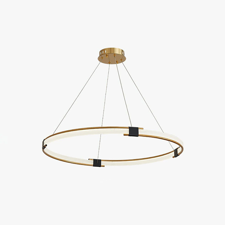 Liniya pendant lamp is perfect for a variety of spaces, from kitchens and dining areas to living rooms and bedrooms, it is designed to elevate your home with their refined elegance. The frame is made of metal in the shape of a halo ring. Acrylic LEDs are integrated into the frame