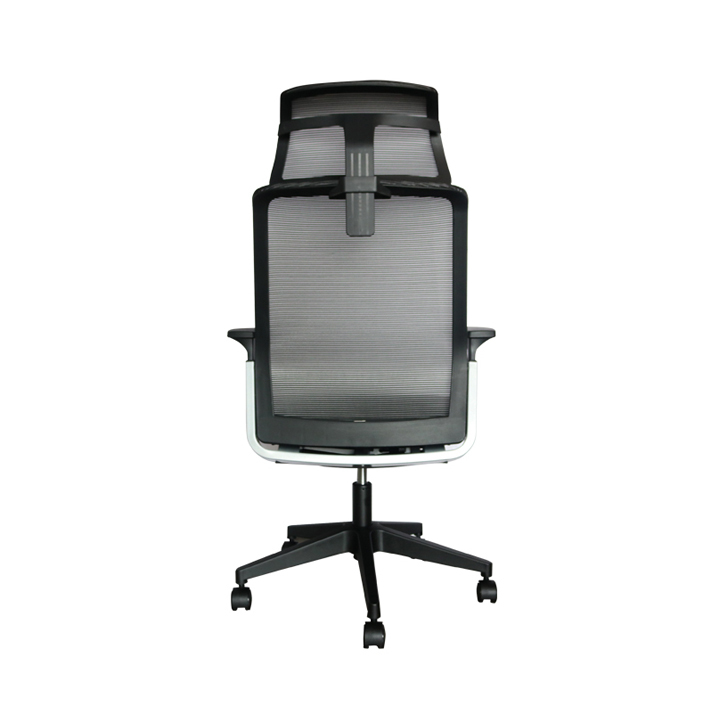 High back with headrest,black fixed armrests,ML mechanism,silver powder coated steel U- frame, black nylon base & castors