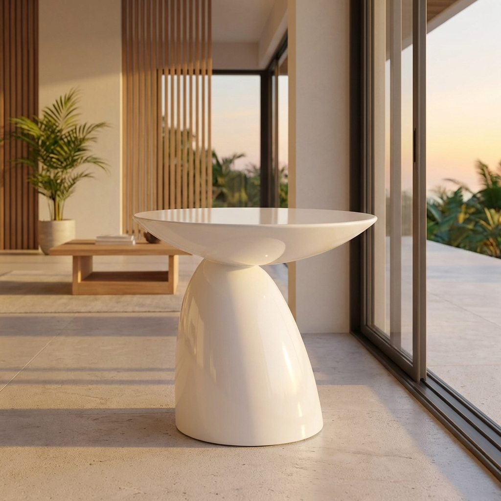 Parabol Table Putih Fibreglass adalah meja samping dengan desain lengkung elegan yang menghadirkan keseimbangan antara keindahan modern dan fungsi sehari hari, menjadikannya elemen pelengkap ruang yang bersih, tenang, dan berkarakter. Terbuat dari bahan serat kaca berkualitas tinggi dengan lapisan cat warna putih bertekstur dof atau mengilap, meja ini menawarkan daya tahan jangka panjang, kemudahan perawatan, serta tampilan visual yang tetap relevan sepanjang waktu.