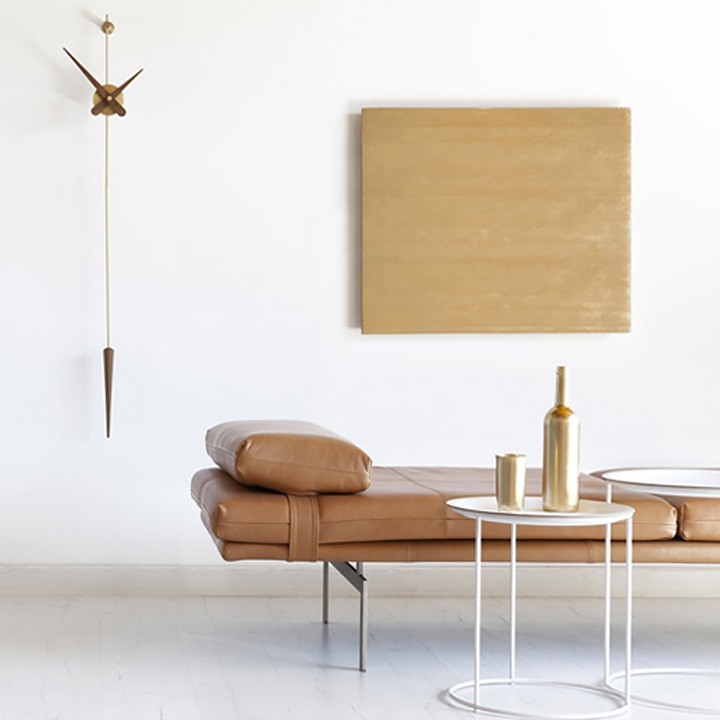 Punto Y Coma G has design accessory recalls the elegant and classic shapes of the pendulum clock, revisiting it in a modern way: it is equipped with a case with hands and a long rod supporting a conical pendulum that marks the passing of time. The clock is made entirely by hand, devoting passion in every detail, and uses a simple German UTS mechanism powered by battery, completely silent.