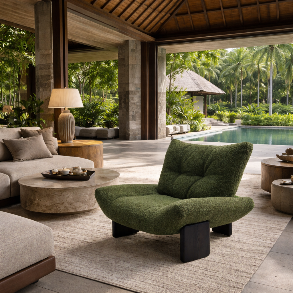 A relaxed, low-profile form designed to anchor contemporary architectural interiors with warmth and calm.
