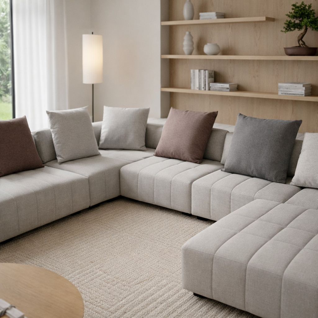 Riverso Modular Sofa Set A menjawab tantangan ini dengan desain modular yang dapat disesuaikan dengan berbagai kebutuhan dan ruang. Penggunaan fabric premium dan rangka metal yang kokoh memastikan kenyamanan dan ketahanan, sementara konfigurasi fleksibel memungkinkan personalisasi ruang secara optimal. Ini bukan hanya sofa, tetapi solusi dinamis yang mengutamakan kenyamanan, fungsi, dan estetika secara bersamaan.