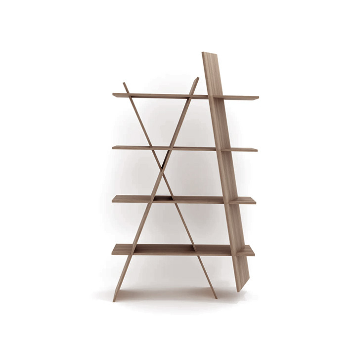 - Rak-rak yang diposisikan dengan presisi untuk menampung berbagai ukuran buku dan objek dekoratif