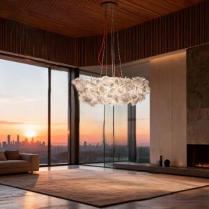 Ruellia Pendant Lamp adalah lampu gantung dengan bentuk organik berlapis yang menghadirkan cahaya lembut dan atmosfer hangat ke dalam ruang. Struktur transparannya dirancang untuk menyebarkan cahaya secara merata tanpa silau, menciptakan kesan ringan namun tetap berkarakter. Cocok digunakan sebagai focal point pada ruang makan, ruang keluarga, maupun area komunal modern, Ruellia menyatukan fungsi pencahayaan dan estetika desain dalam satu elemen yang tenang, elegan, dan tahan waktu.