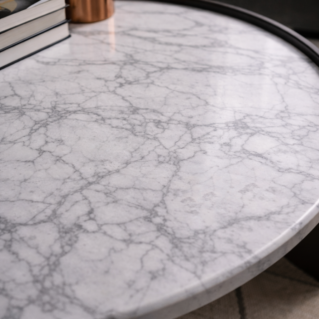 - Gunakan alas atau coaster untuk benda cair, panas, atau tajam guna melindungi permukaan marmer dalam jangka panjang.
