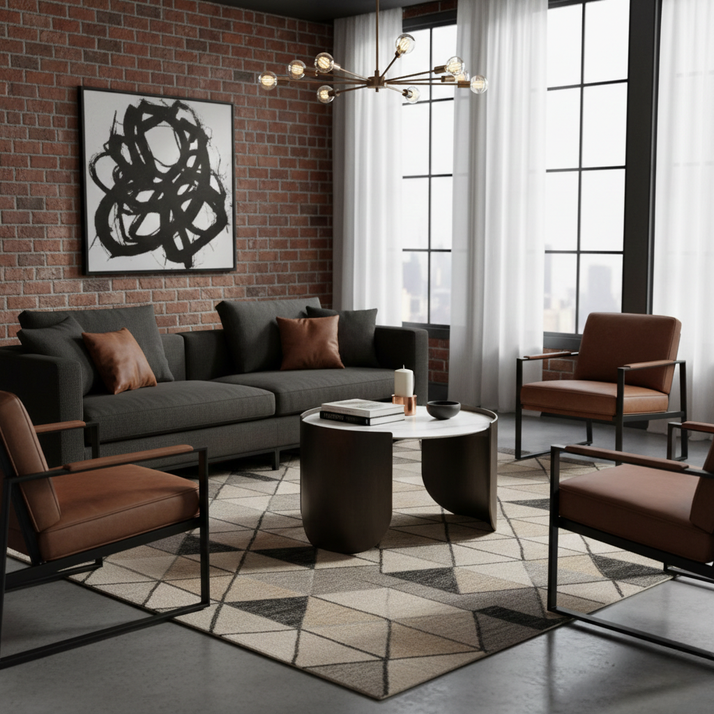 - Padukan dengan sofa berbahan kulit gelap atau kain bertekstur kasar guna menciptakan kontras material yang kaya.