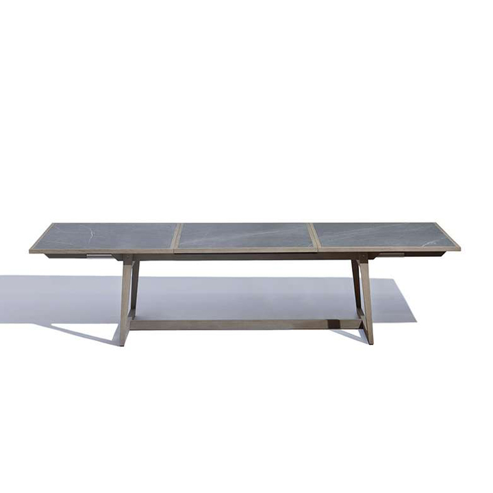 SKAAL extendable table, with DuratekĀ® structure and Italian ceramic top. A very well designed table due to its materials and its mechanisms (lever extension system). It can accommodate up to 12 people in great comfort. It offers the choice of two top colors.