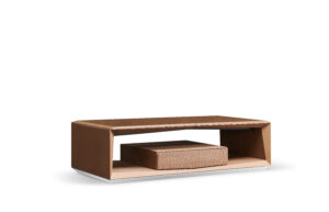 is conceived as a low, architectural anchor that brings balance and refinement to executive lounge and meeting areas. Its clean horizontal profile is framed by solid side volumes, creating a strong yet composed presence that complements the larger pieces of the Strata collection. An open lower plane and integrated central element introduce depth and functionality without visual excess, allowing the table to serve both display and everyday use. Finished with the same meticulous attention to material and proportion, the Strata Coffee Table completes the space with quiet authority—subtle in height, confident in character.\