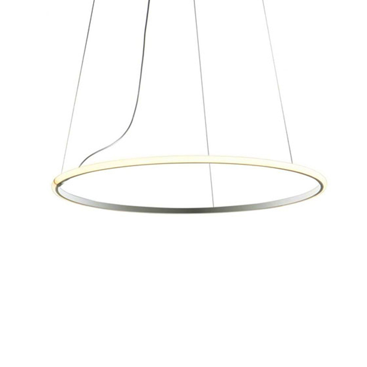 Sunniva LED pendant lamp available in two versions; single and triple rings. The single ring has two options for sizing; 800mm and 600mm. In triple rings set consist of three size; 1000mm, 800mm and 600mm. White aluminum base covered with translucent silicon PU protecting the LED light. The LED light providing a beautiful ambient light in warm white.