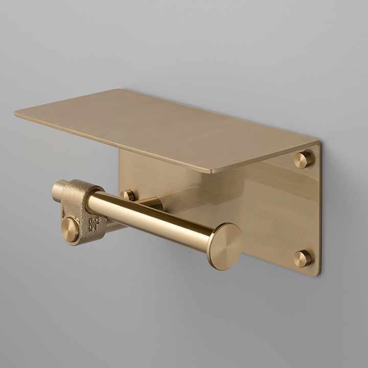 Toilet Roll Holder / With Shelf / Cast / Brass