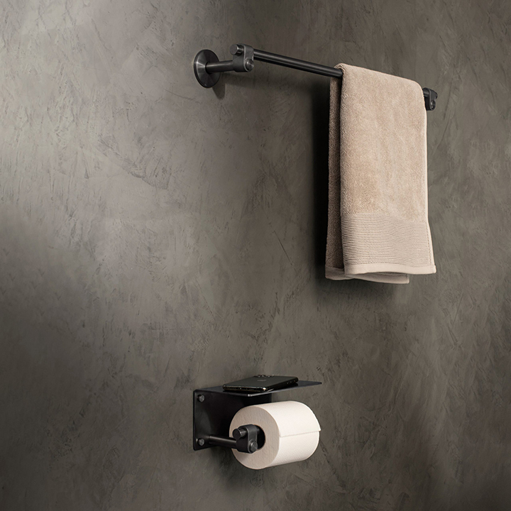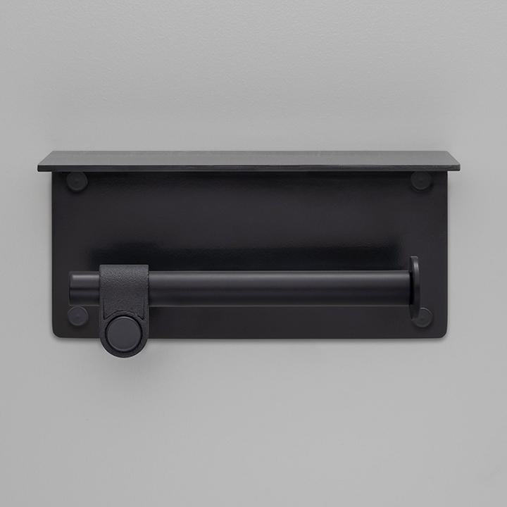 Toilet Roll Holder / With Shelf / Cast / Welders Black