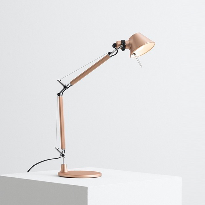 Tolomeo Mini has Base and structure in polished aluminium, diffuser in anodized aluminium, joints and supports in polished aluminium.