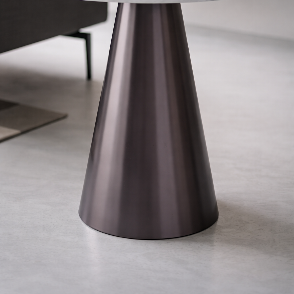 Washington Side Table bukan sekadar meja samping biasa, melainkan ebuah studi tentang kontras material yang dikerjakan dengan presisi tinggi. Mengambil inspirasi dari gaya arsitektur urban yang bersih, meja ini menghadirkan perpaduan antara dinginnya marmer White Carrara dari Italia dengan ketegasan warna Gun Metal. Penyelesaian akhir matt pada permukaan marmer memberikan tampilan yang sangat jujur dan tenang, sementara rangka stainless steel dengan efek brushed memberikan kesan industrial yang mewah. Meja ini dirancang bagi mereka yang mendambakan furnitur dengan karakter yang berwibawa namun tetap memancarkan kelembutan alami.