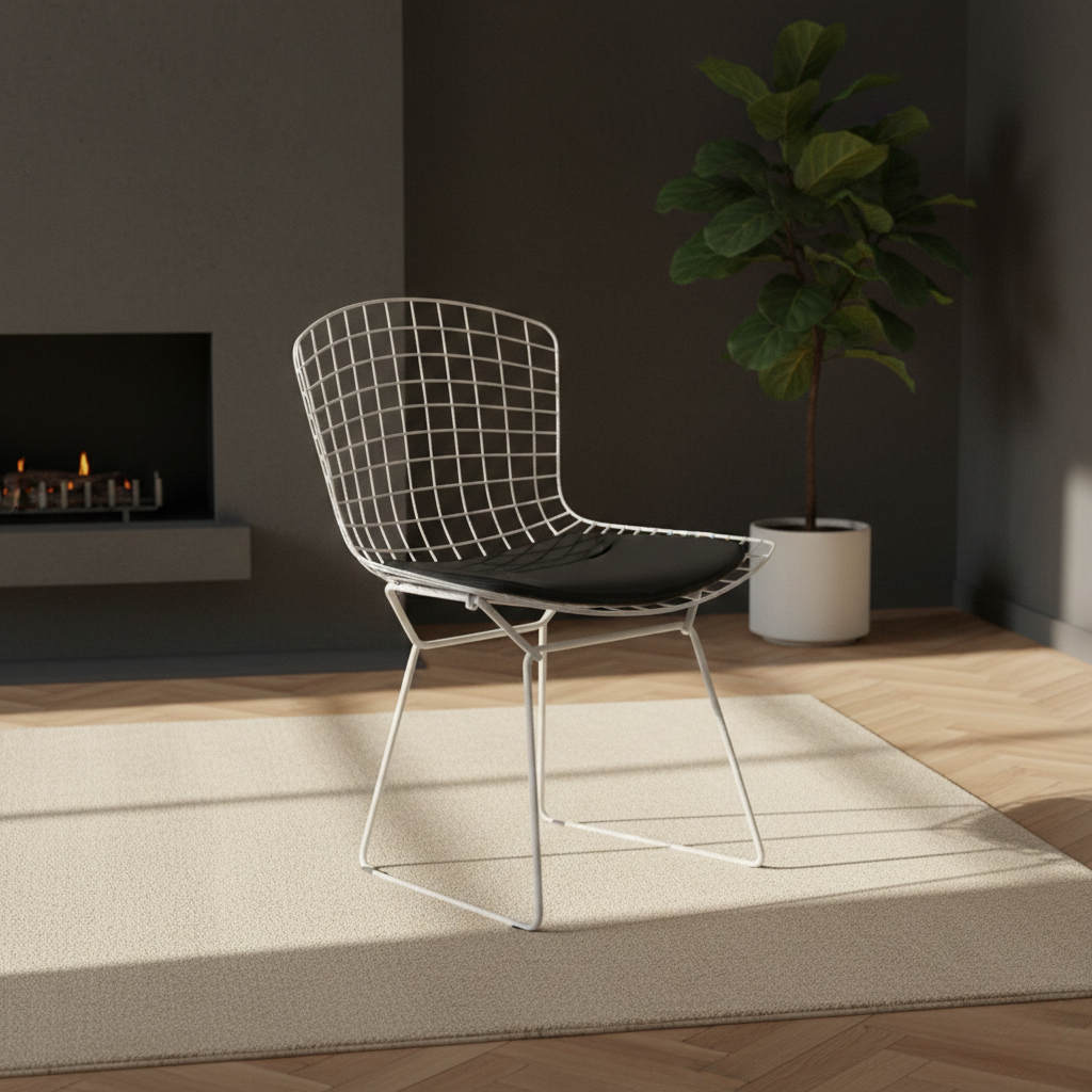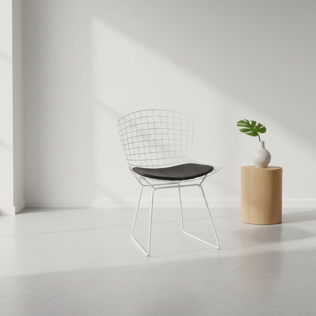 Fleksibilitas desain Wire Chair Single Pad (A11) White Steel memungkinkan kursi ini menyatu dengan berbagai konsep ruang dan gaya interior.