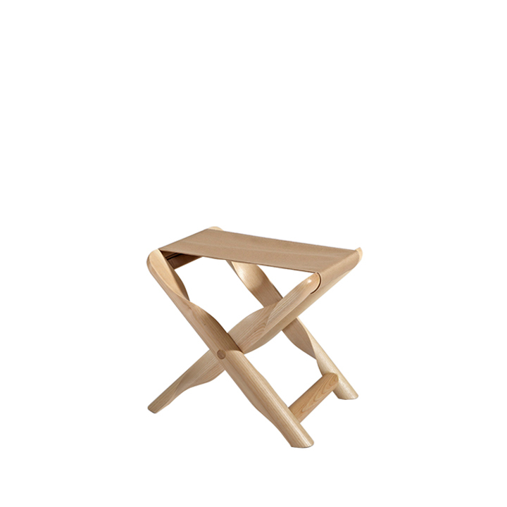 Foled stool, solid wood ASH in natural color, oxford fabric
